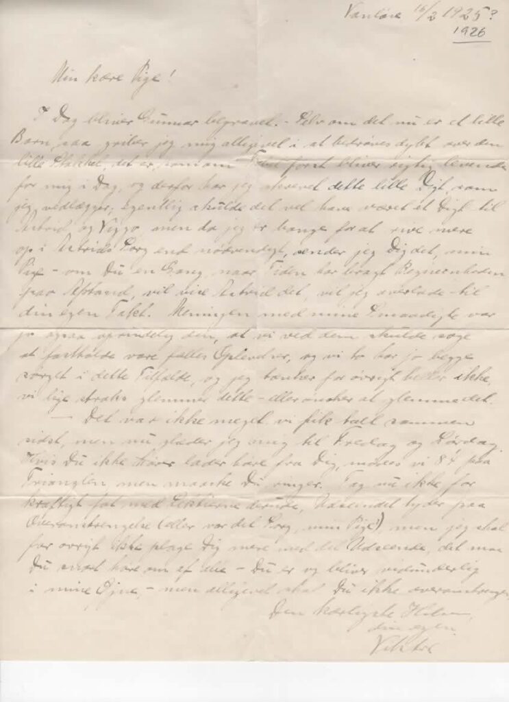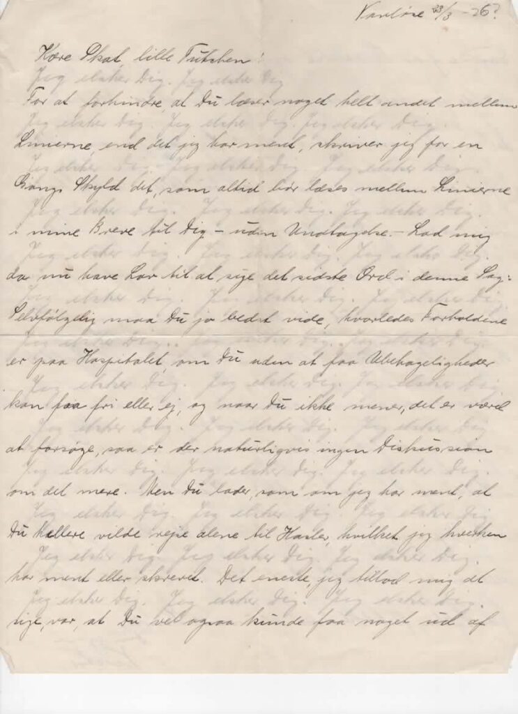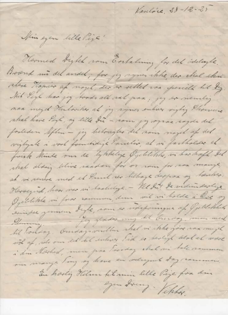 Første efterladte meget kærlige brev fra 28.12.1925 Brev fra 16.02.1926 Et andet kærligt brev til Rigmor 23.03.1926